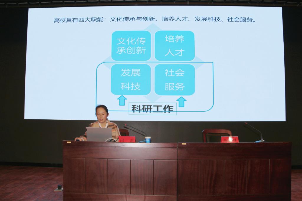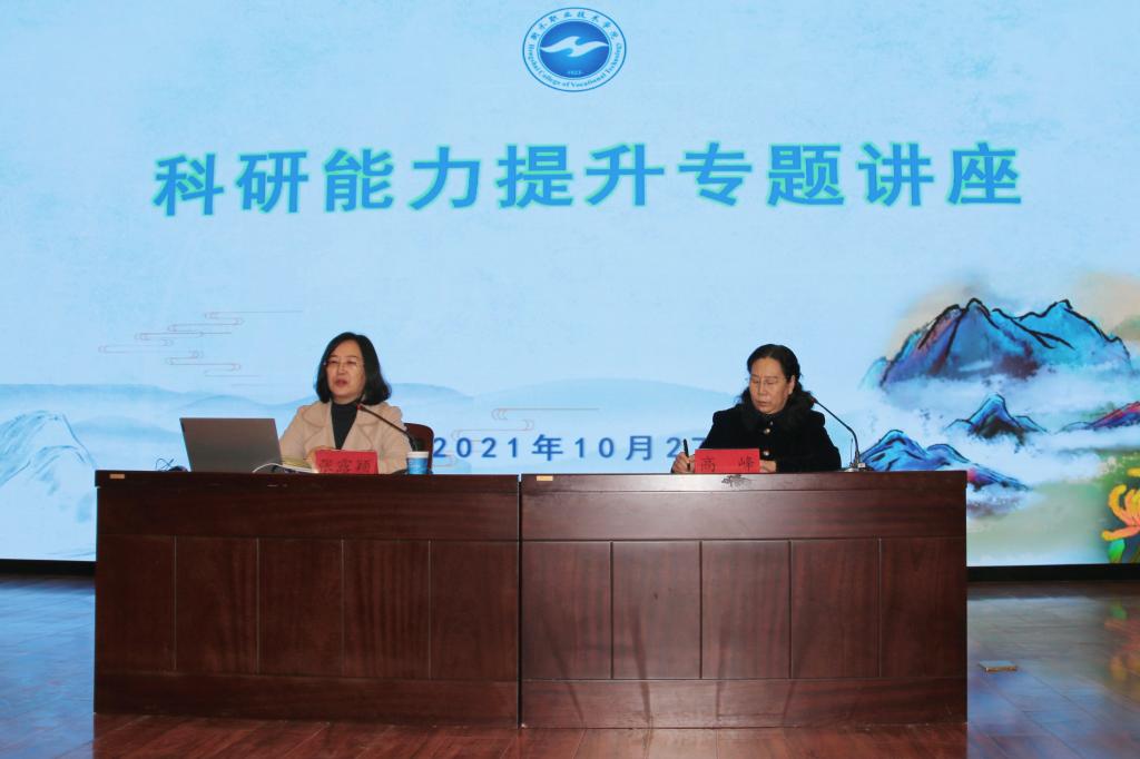 10月27日学校举办了科研能力提升专题讲座。学校副院长张露颖同志出席活动并讲话,各部门科研分管领导、在研课题组成员、及近三年来参加工作的教学人员参加了讲座。会议由科研处长高峰主持。