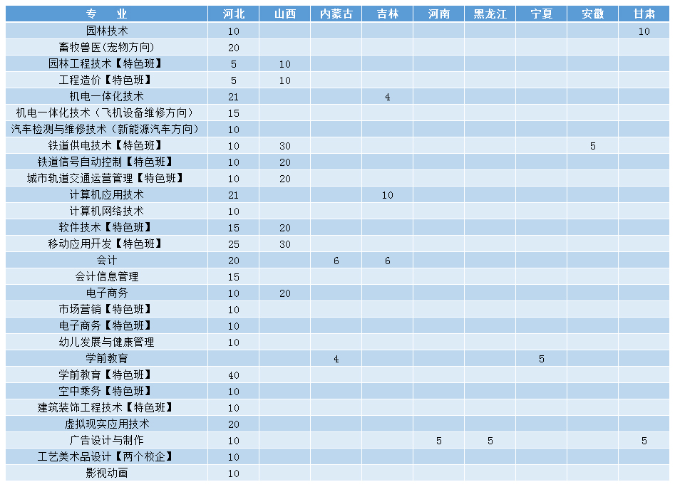 上一条:2021年统招招生计划 下一条:2019年河北省对口征集计划