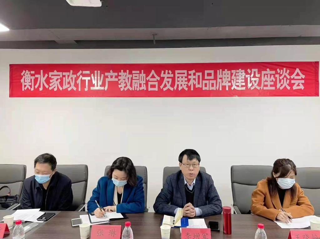 为贯彻落实《国务院办公厅关于促进家政服务业提质扩容的意见》(国办发〔2019〕30号)、国家发展改革委等5部委《关于开展家政服务业提质扩容“领跑者”行动试点工作的通知》、《衡水市家政服务业提质扩容三年行动计划(2020—2022年)》等文件精神及市委市政府要求,推动衡水家政行业产教融合,提升品牌建设水平,促进全市家政服务业高质量发展,2022年3月29日上午9:00,金年会党委书记李增军在衡水市家政实训基地参加开衡水家政行业产教融合发展和品牌建设座谈会。会议由衡水市妇联党组书记、主席张琳主持。