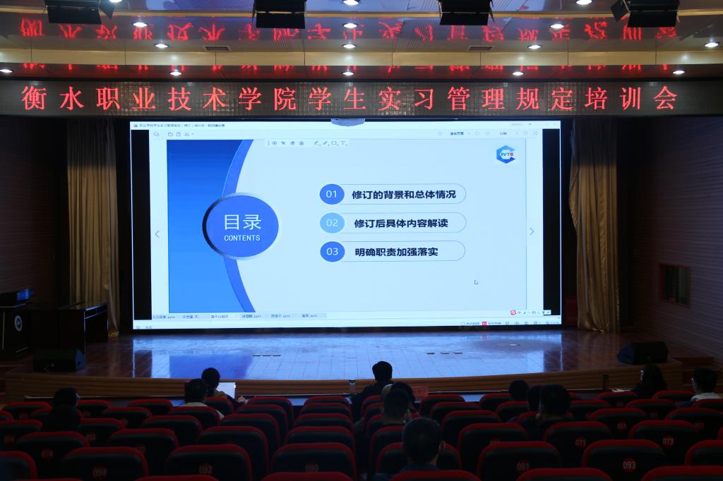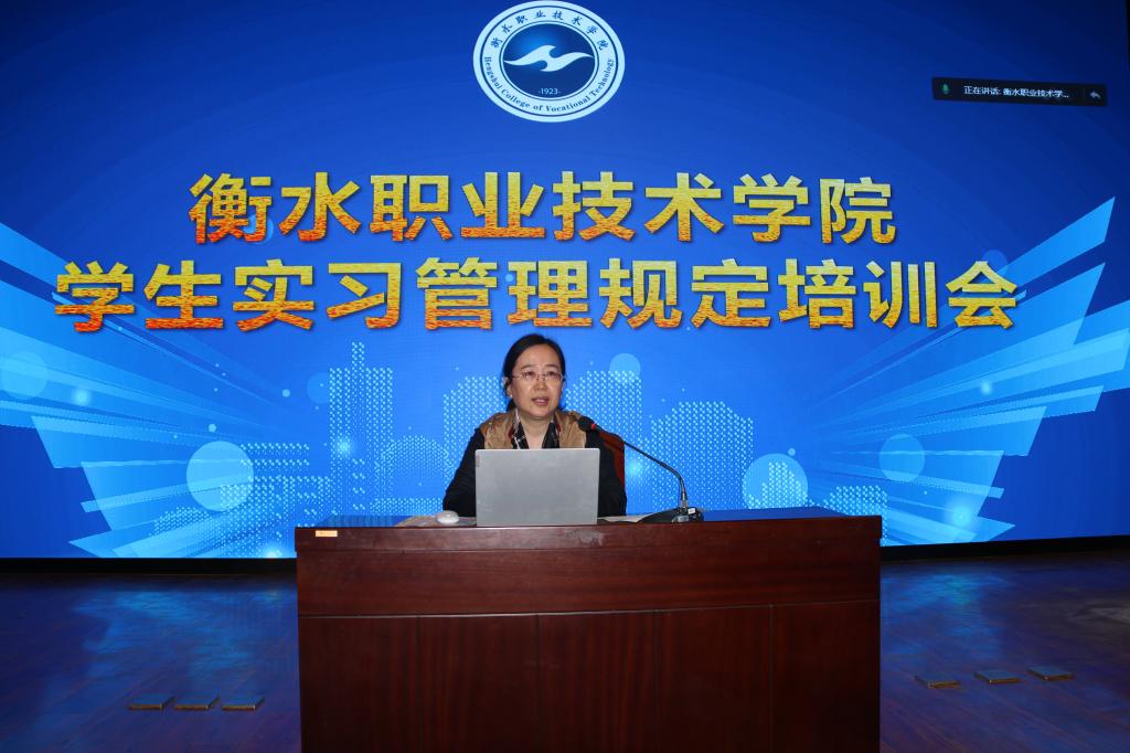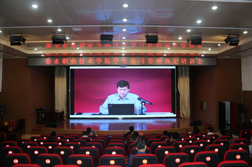 4月20日上午,我校在西报告厅召开了《职业学校学生实习管理规定》专题培训会议。校长李建广、副校长张露颖出席会议。教务处、学生处、安全处领导,各系部主任、教学主任,及相关人员也以线上线下相结合的方式参加了会议。