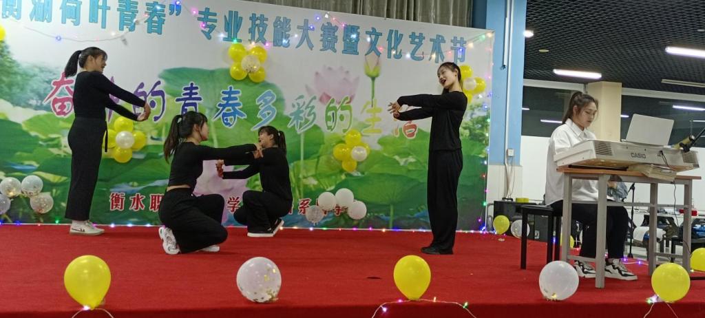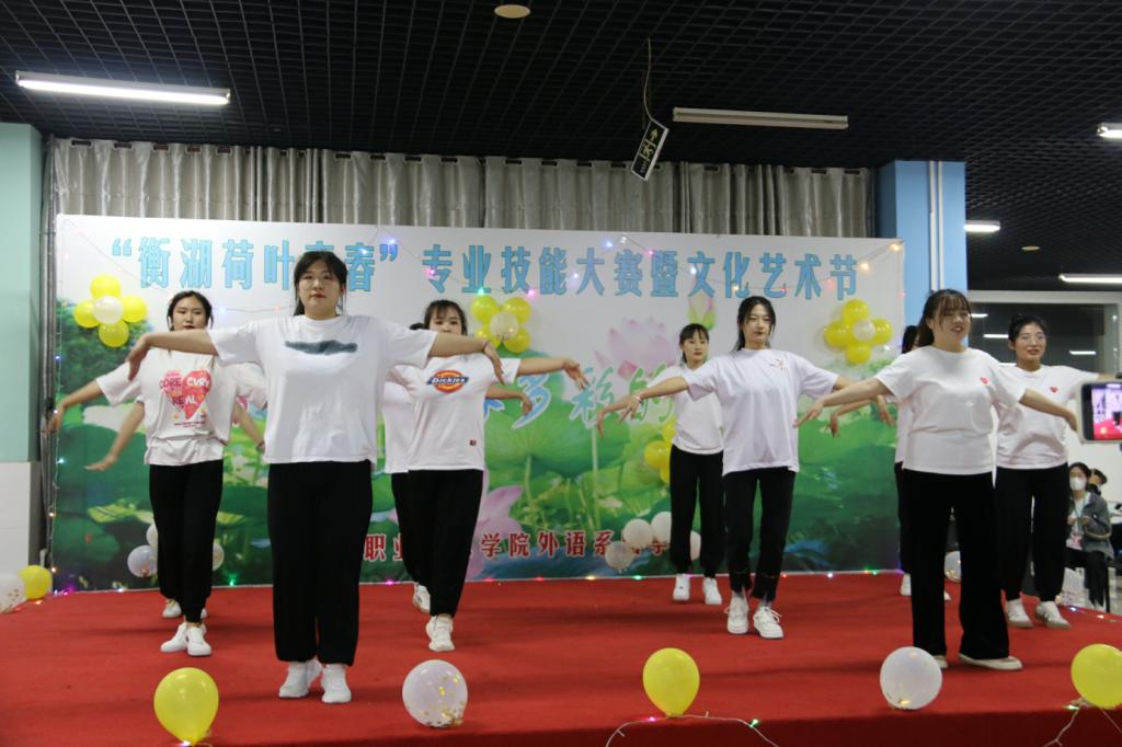 在2022年职业教育活动周来临之际,为深入学习贯彻习近平总书记关于职业教育的重要指示精神和全国职业教育大会精神,大力宣传劳模精神、劳动精神、工匠精神,弘扬劳动光荣、技能宝贵、创造伟大的时代风尚,提高我系学生自身职业技能素养。2022年4月27日晚在外语系学习基地小舞台举办第六届“衡湖荷叶青青”专业技能大赛暨文化艺术节舞蹈专场比赛。外语系孙凤忠主任、韩立副书记、综合办李长春老师、于彦云老师和史乐乐老师等莅临现场观看并担任评委。