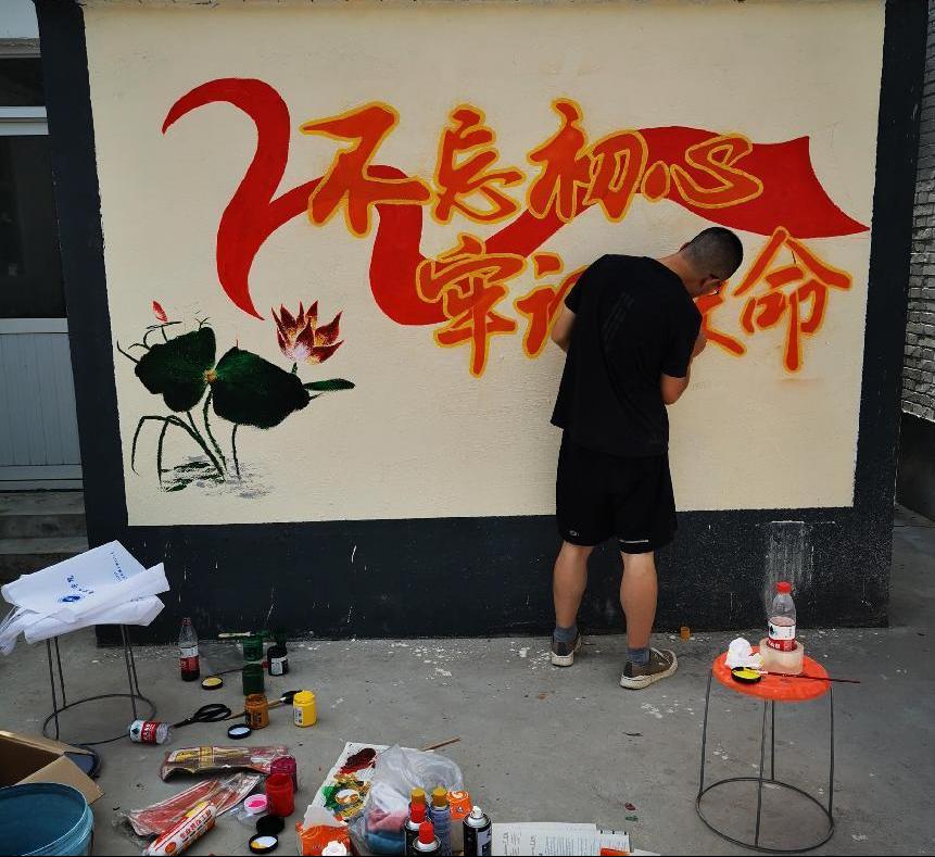 实践过程中团员们不畏炎热与辛苦,精益求精,创做了一幅幅带有中国红色基因的美丽画卷,迎合了最美乡村建设的政策要求,弘扬中国梦,坚定了“不忘初心、牢记使命”的精神内涵。绘制过程中,路过的村民驻足观看,不时发出赞扬之声,这是对实践团的鼓励,更体现了实践活动的入民心的效果。