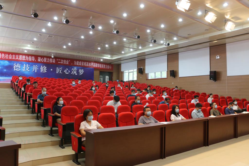 校长李建广在部署秋季学期工作中全面回顾了上半年学校的党建思政、内涵建设、项目人员建设、产教融合、科研服务、招生就业等方面取得的可喜成绩,就新学期工作提出具体要求。他强调,一是要进一步守牢安全底线。扎实做好开学期间和教学期间疫情防控;全校上下要牢固树立大安全观,落实安全工作责任制,全面筑牢安全防线,确保校园安全稳定。二是进一步加强内涵建设。优化专业动态调整机制、统筹推进高水平专业建设、积极探索“岗课赛证”融通的育人模式、深入推进“三教改革”,以提升教师教学水平带动学校教育质量提高。三是进一步优化学生管理。做好疫情防控常态化下的学生心理健康,倾听学生心声,及时反馈学生诉求。四是进一步深化产教融合。按照建设方案逐步优化产业学院组织机构、运行机制,共建实训基地,共同培养师资,共同编制人才培养方案,以产业学院建设提升人才培养与产业需求的契合度。五是进一步搞好社会服务。着力提高科研服务能力、积极开展职业培训。六是进一步推进“双高”建设。学习文件、吃透政策、活学活用,力争多出“双高”建设经验成果。七是进一步加快交院校区建设。全力以赴、攻坚克难,确保交院校区启用工作安全、有序、高效。八是进一步完善内部治理。建章立制,不断完善内部各项体系建设,确保学校各项工作依法依规运行。九是进一步推动信息手段应用,实现教育教学和管理服务的信息化变革。十是作好百年校庆,凝聚力量,开启学校发展新征程。